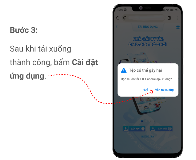 Buóc 3:Sau ?ó xu?t hi?n th?ng báo và nh?n ch?n “Cài ??t” ?? cài ??t vào thi?t b? di ??ng