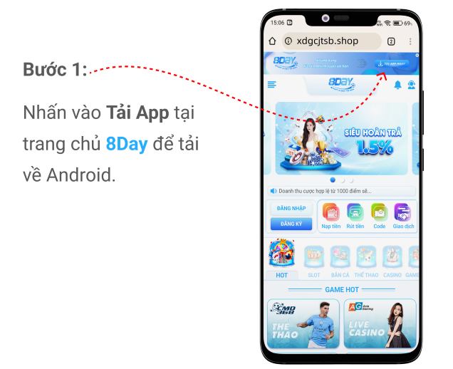 Buóc 1: Nh?n vào T?i App t?i trang ch? 8Day ?? t?i v? Android